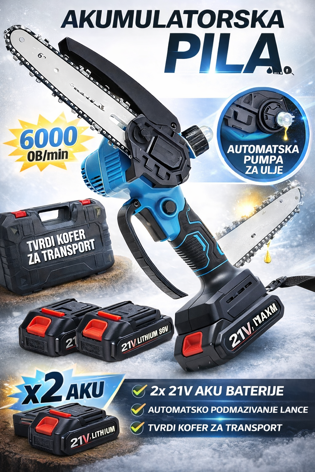 Aku pila sa 2 baterije i 2 lanca (Ful oprema)