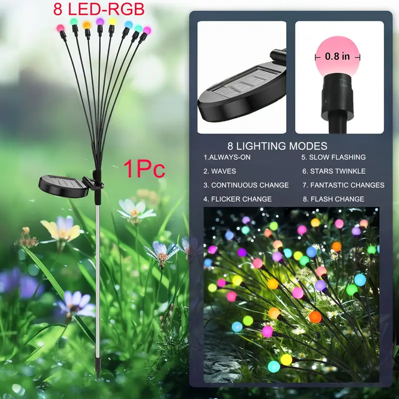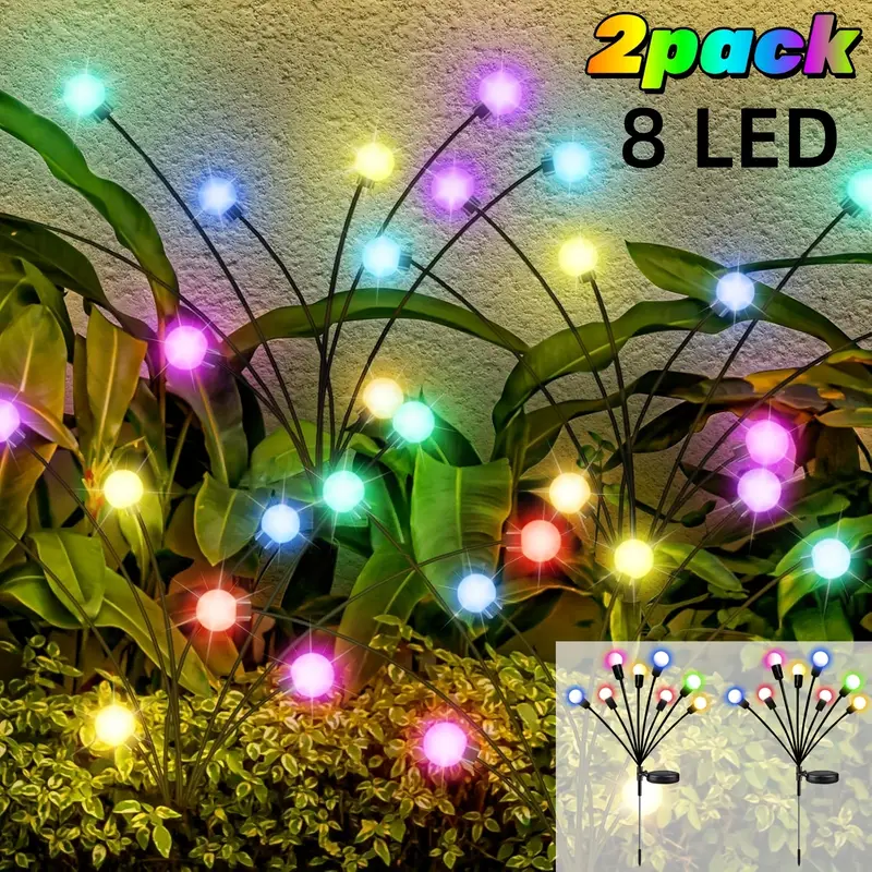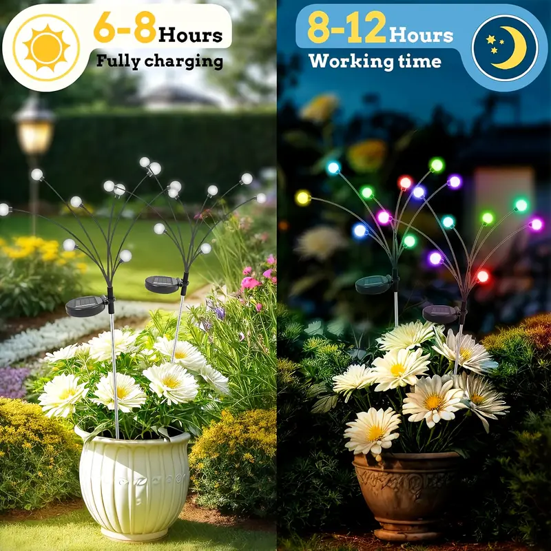 Uljepšajte svoj vrt, balkon ili dvorište uz ove šarmantne solarne svjetiljke! Svaka svjetiljka ima 8 LED kuglica koje stvaraju prekrasan efekt svitaca i osvjetljavaju prostor bez kablova i struje.